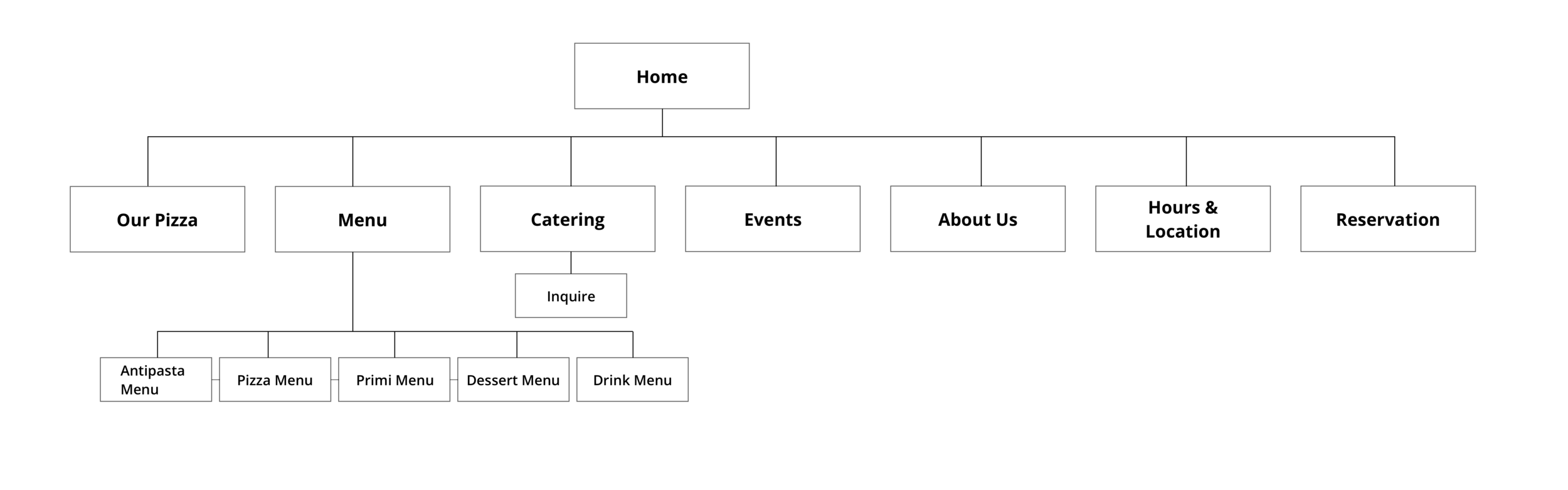 By gathering information from our competitors and interviews, I created the sitemap of the website. In the meantime, since Mama Roma was using square space as its hosting platform, I also checked with our developer Anu to make sure this site is doable on square space.