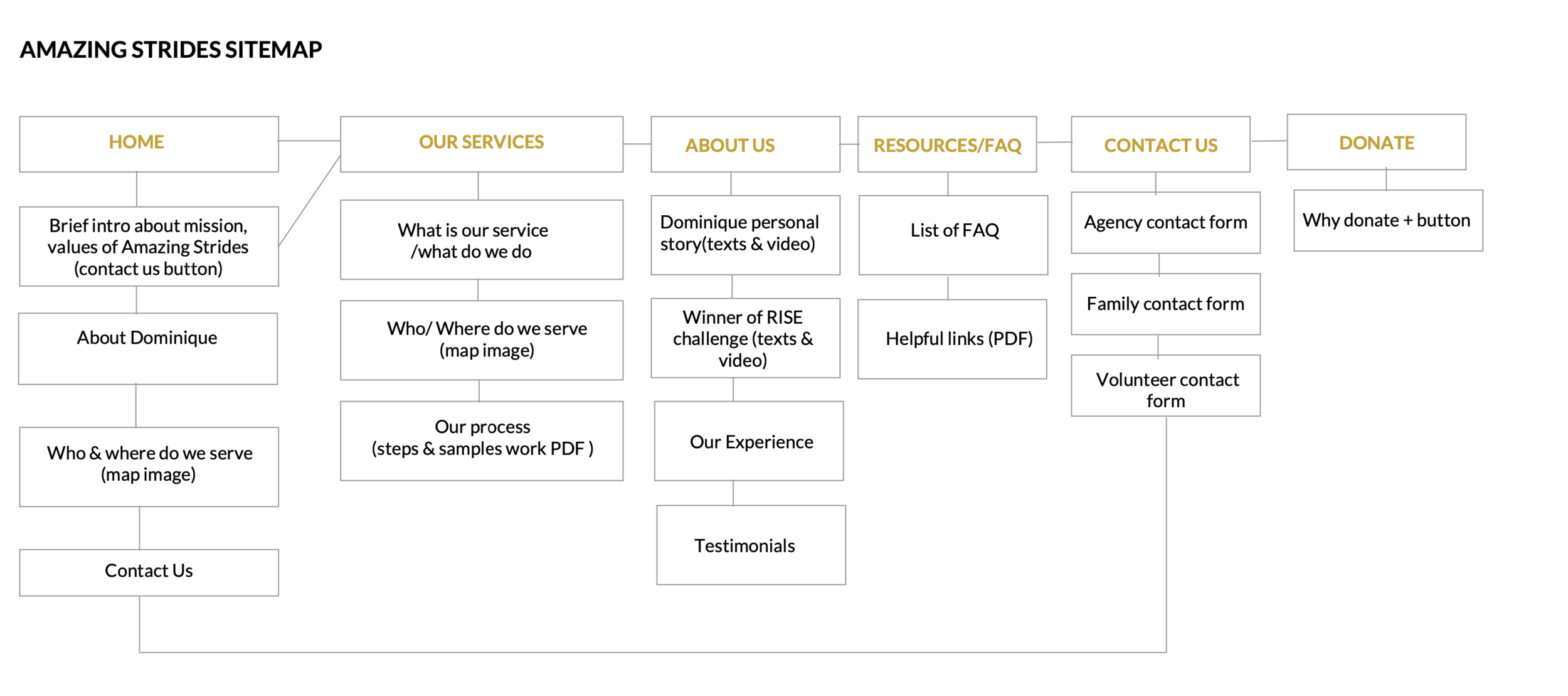 There’re always challenges along the design journey. After 1st round of mockup received approval, our develop team realized that the current platform that Amazing Strides was built on has very limited functions and we are not able to display the content as we wanted to based on 1st round of mockups. Besides template constraints, we also had issues with the counts of words. So I have to rework on the wireframes based on technical constraints. In the meantime, I sat with Ira, our content writer to go through each section.